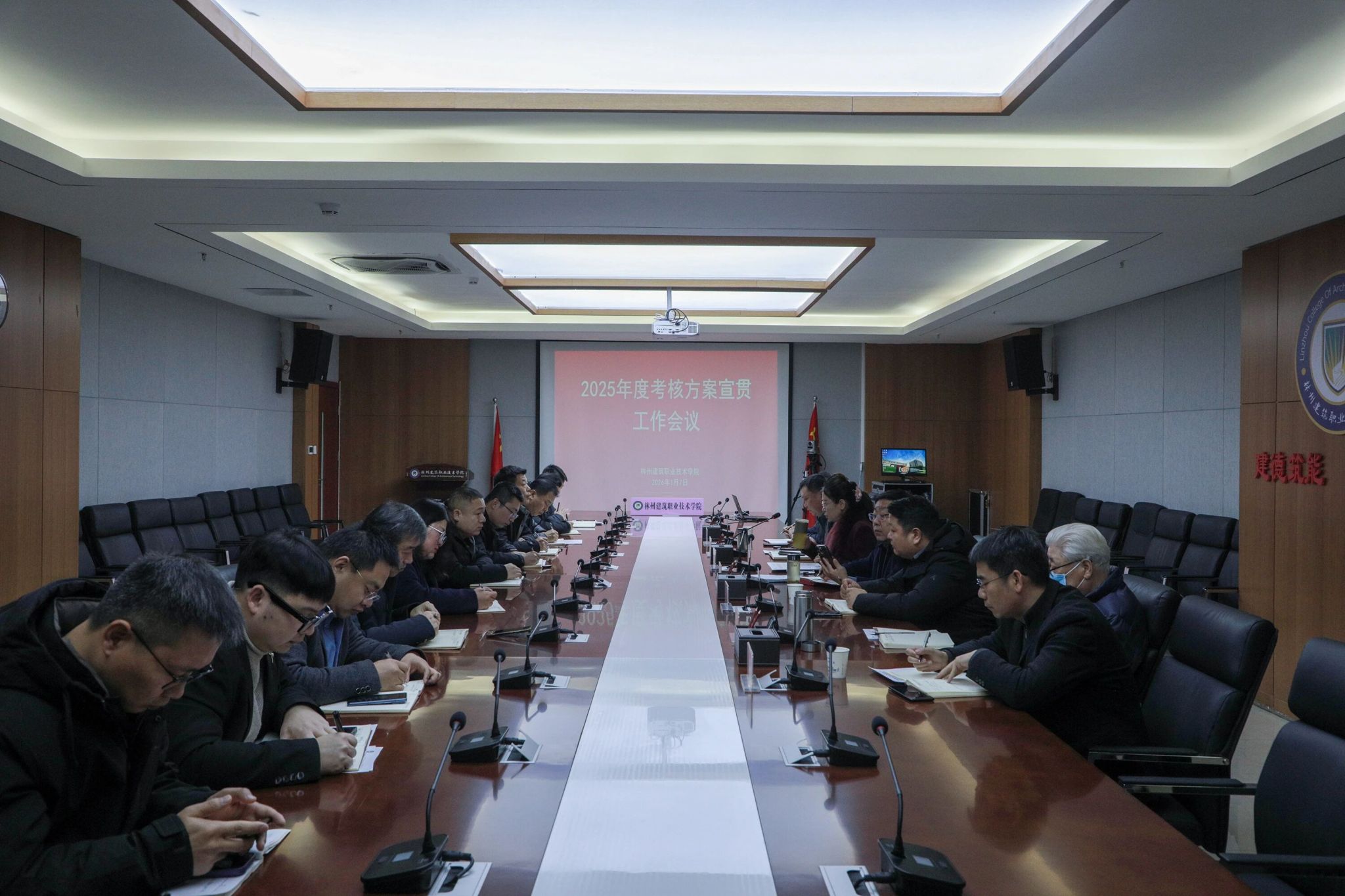 1月7日上午,林州建筑职业技术学院在行政楼211会议室召开2025年度考核方案宣贯会。全体在校校领导出席会议,各单位负责人及相关工作人员参加会议,会议由党委副书记、副校长郭鹏主持。